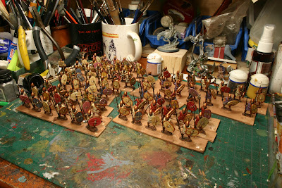 A little challenge I gave to myself this morning : to boost up this month production. So here are 80 Thureophoroi painted today. Tabletop quality.